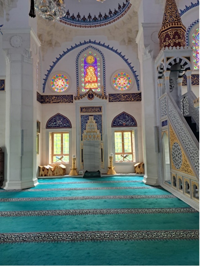 Am 05.05.2022 ging es für die Klasse 8a zum Wandertag in die Sehitlik-Moschee, eine in Berlin gelegene Moschee mit einer Osmanischen Architektur. Vor der Moschee liegt ein historisch wichtiger Friedhof, wo z.B. Botschafter begraben liegen. Die Grabsteine zeigten alle Richtung Mekka, was wir vorher nicht wussten. Als wir als Klasse dort ankamen, hat uns ein männlicher Muslim empfangen. Er hat uns aufgefordert, uns auf den Teppich in der Moschee zu setzen. Natürlich mussten wir die Regeln befolgen (z.B. Schuhe ausziehen). Danach hat er uns viele lehrreiche Informationen zu der Moschee und dem Alltag eines Muslims genannt, und uns viele Fragen gestellt. Die meisten konnten wir ganz gut beantworten. Als er mit der Führung fertig war, konnten wir noch viel Zeit auf dem nahegelegenen Tempelhofer Feld verbringen, um in der Sonne ein Picknick zu machen oder Volleyball zu spielen.