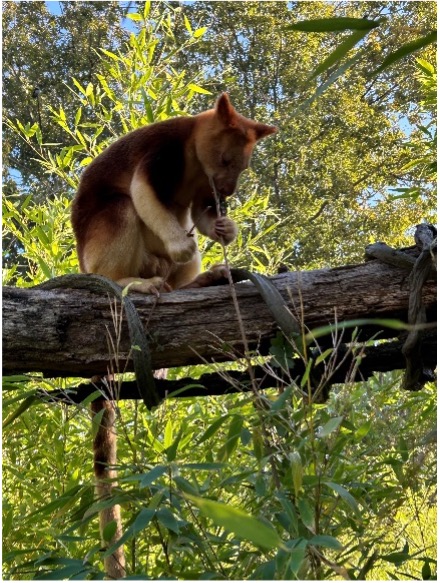 Am Freitag Morgen um 7:45 Uhr trafen wir uns am S-Bahnhof Lichtenrade, um mit der Bahn zum Tierpark zu fahren. Es war zwar ziemlich laut im Wagon, aber jeder hatte seinen Spaß gefunden. Man durfte sogar sein Handy benutzen, das nutzten viele mit Vergnügen aus. Als wir eine Weile gefahren waren, stiegen wir in eine weitere S-Bahn um. Als wir die Treppen, die aus dem Bahnhof herausführten, hinaufstiegen, sahen wir einen riesigen, gigantischen, grünen T- Rex, der hinter einer Umzäunung stand. Nachdem wir ein wenig warteten, betraten wir den Tierpark. In der Nähe des Eingangs befand sich das Gehege der wolligen Bisons. Sie waren echt groß im Vergleich zu einer normalen Kuh und hatten einen riesigen, wuschligen Kopf. Als erstes bekamen wir einen Plan, wo alle Tiergehege abgebildet waren, damit wir immer wussten, wo wir uns befanden. Danach sammelte sich eine riesige Masse um das Gehege der süßen, kleinen Ziesel und der knuddeligen Stachelschweine. Es wurden viele ,,Paparazzi“ Fotos von ihnen geschossen. Als nächstes bekamen wir eine etwas ältere Rallye des Tierparks und sollten uns in kleinen Gruppen zusammenfinden. Nach einer kleinen Ansage der Lehrer gingen wir innerhalb unserer Gruppe los, um bezaubernde Tiere zu sehen. So verteilten sich die ganzen kleinen Grüppchen im gesamten Tierpark. Unsere Gruppe war zuerst bei dem eher kleineren Brillenbär, der gerade Junge bekommen hatte. Diese sahen einem gewöhnlichen Fuchs sehr ähnlich und zuerst hatten wir uns auch gewundert, wieso Füchse in einem Bären Gehege herumliefen, bis wir schließlich merkten, dass es kleine Bären waren. Danach bewunderten wir die schneeweißen Eisbären, die ganz entspannt in der Sonne saßen. Auf dem Rallye-Zettel war auch eine Aufgabe über die Eisbären, die man, wenn man einen Text über die Eisbären gelesen hatte, gut beantworten konnte. Wisst ihr denn, wie viel ein ausgewachsener Eisbär wiegt? (Lösung am Ende) Auf dem Weg zum Raubtierhaus sahen wir viele weitere Tiere, wie Esel, Eulen und andere Vögel. Wir konnten es uns nicht entgehen lassen, in das Gehege der niedlichen Baum-Kängurus zu gehen, die genüsslich ihr Grünzeug futterten und sich nicht von uns ablenken ließen.