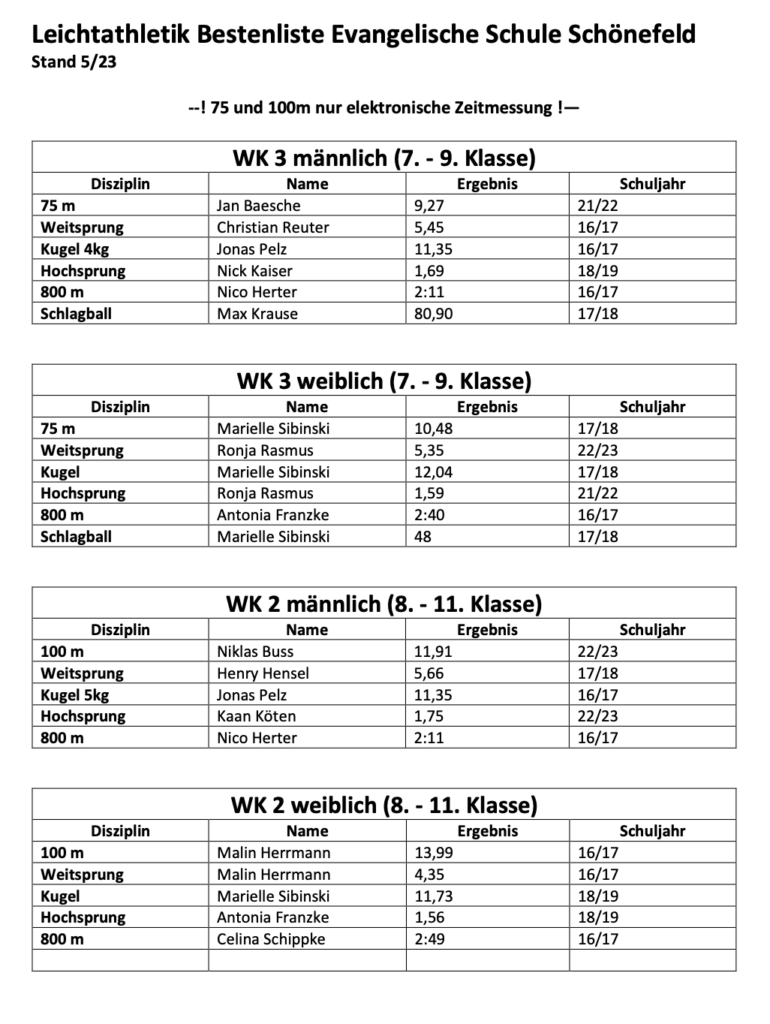 Bundesjugendspiele und Bestenliste der Leichtathletik